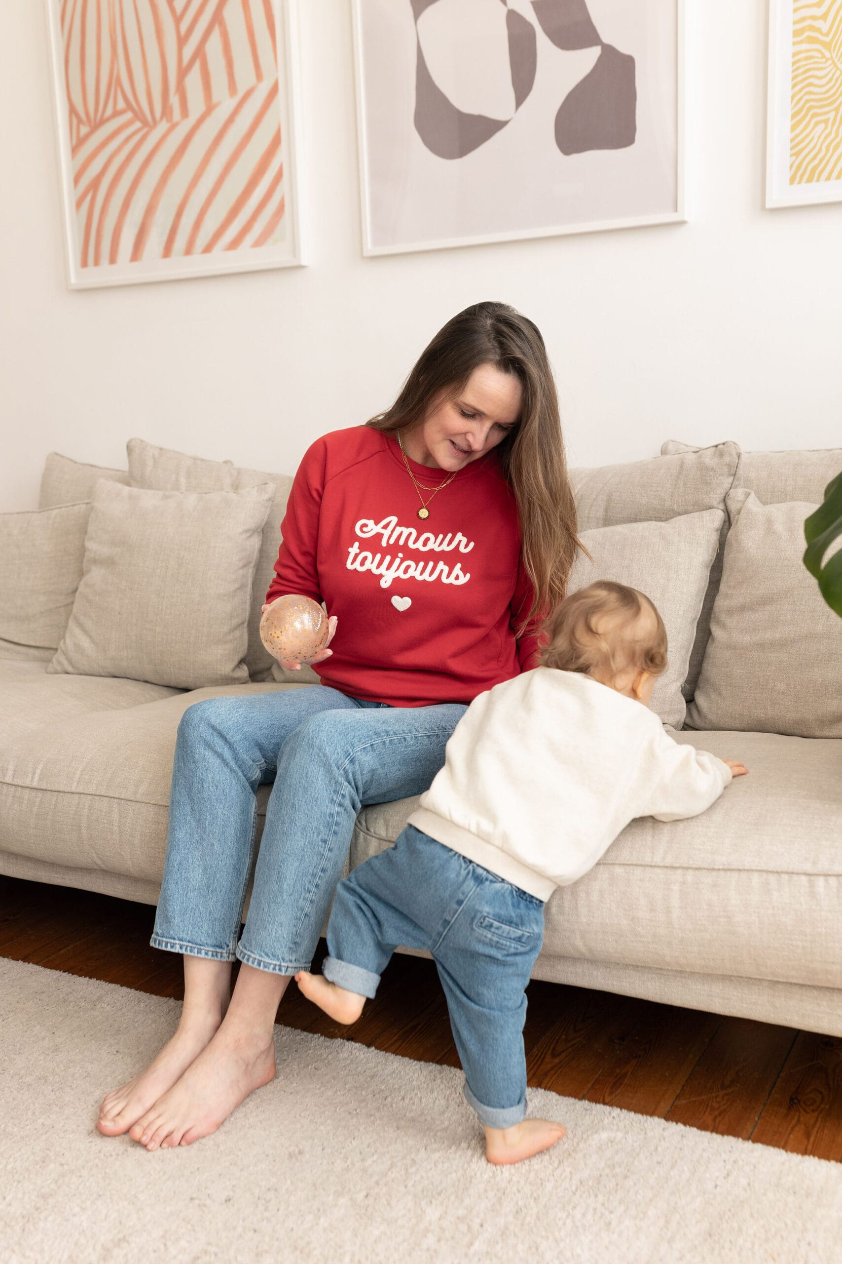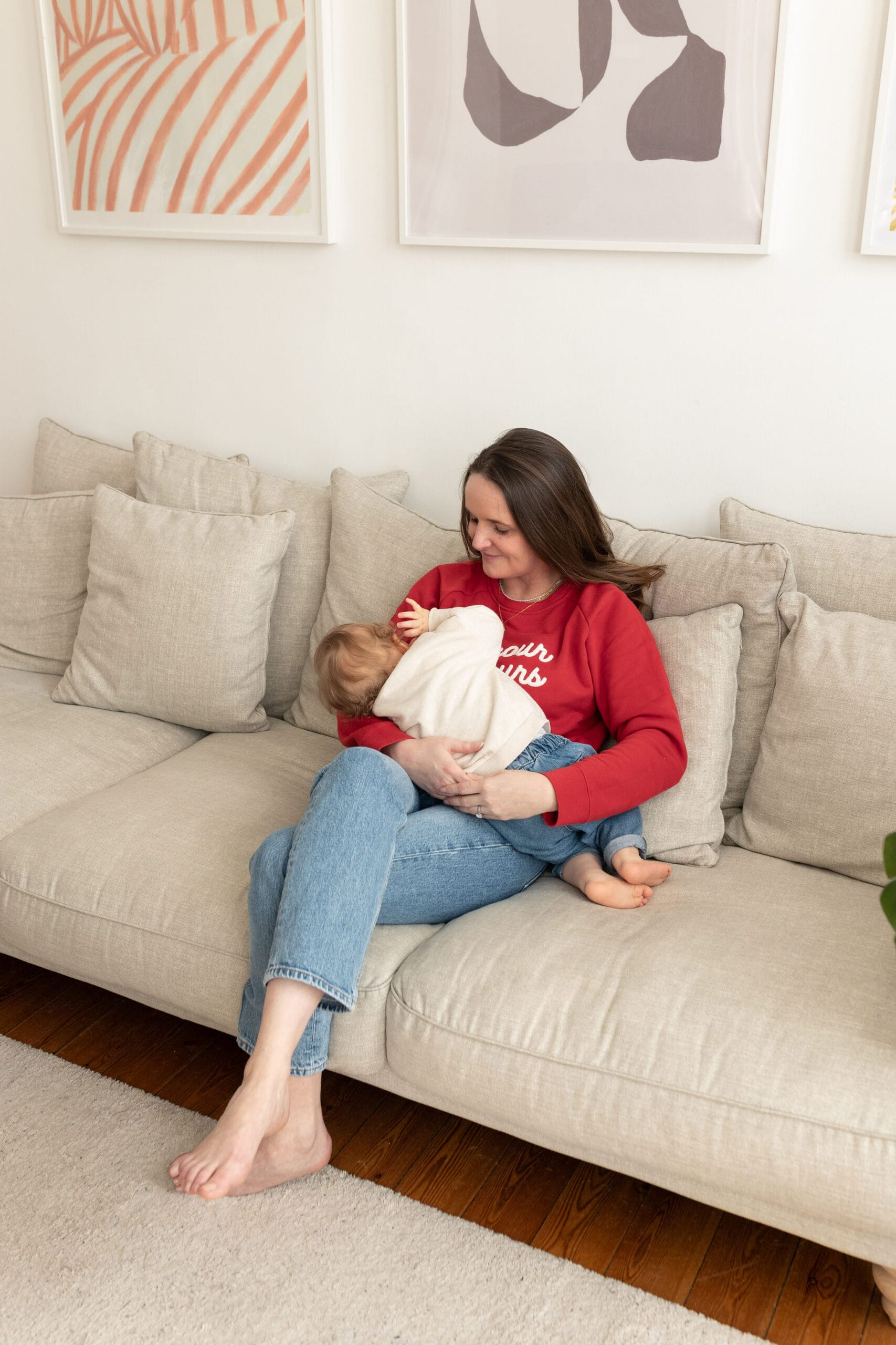 Un sweat qu’on attrape naturellement, pour allaiter, pour sortir, pour rester à la maison. Et qu’on continue à porter, même après.